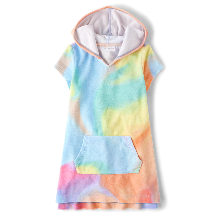 The Childrens Place Girls Blue Tie Dye Terry Swim Cover-Up Rainbow Patterned Swimsuit