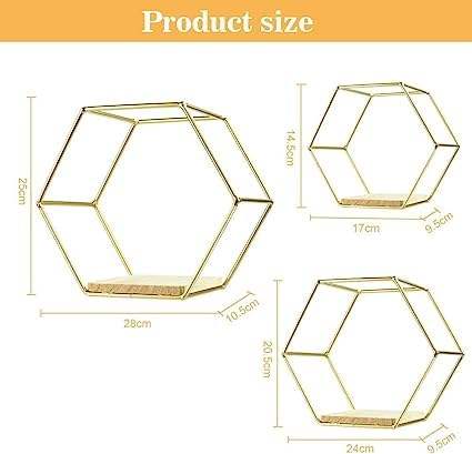 The Craft House Wall Decor Set of 3 Modern Metal Wall Shelf Gold Metal Wire and Wooden Base Wall Mounted Storage Shelf