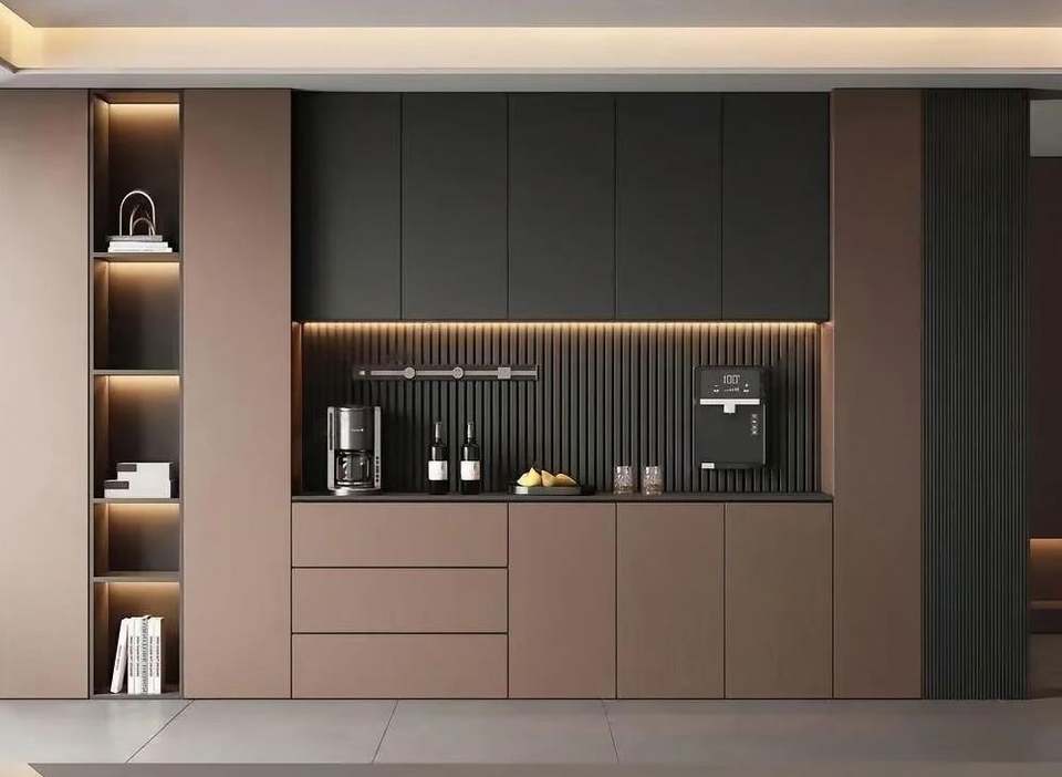 The Dining Room Displays the Wine Cabinet Against the Wall in One Living Room Customized Cabinet