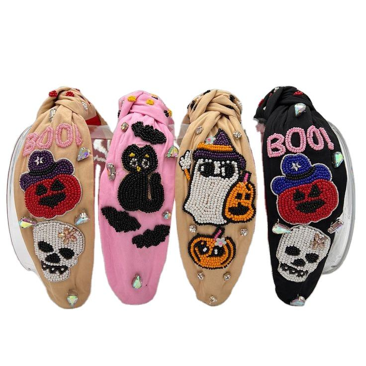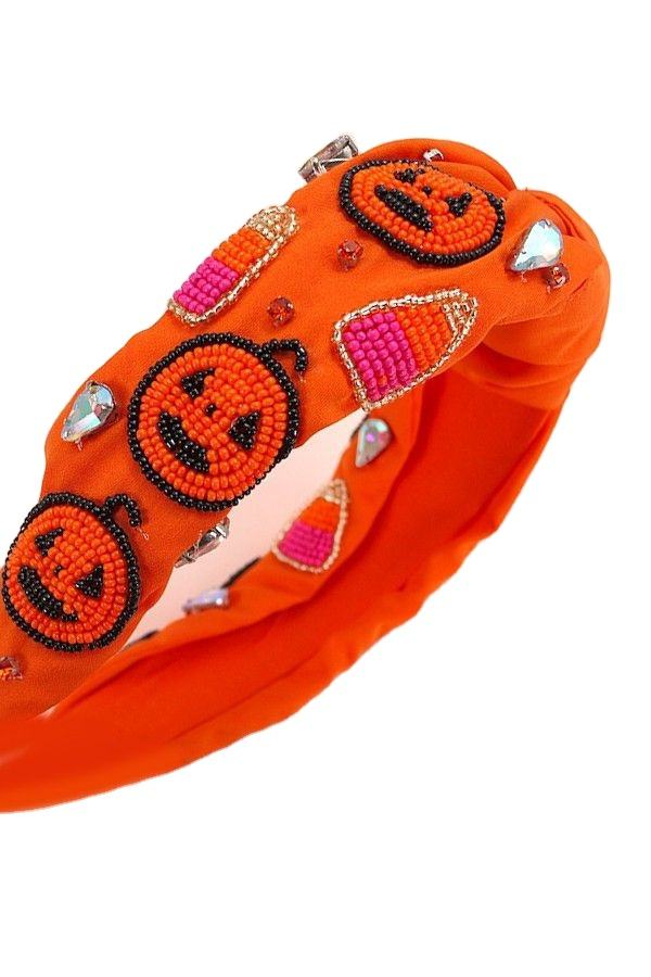 The Halloween Boo pumpkin beaded head band hair band made with this head band features delightful Boo/Ghost/and pumpkin design