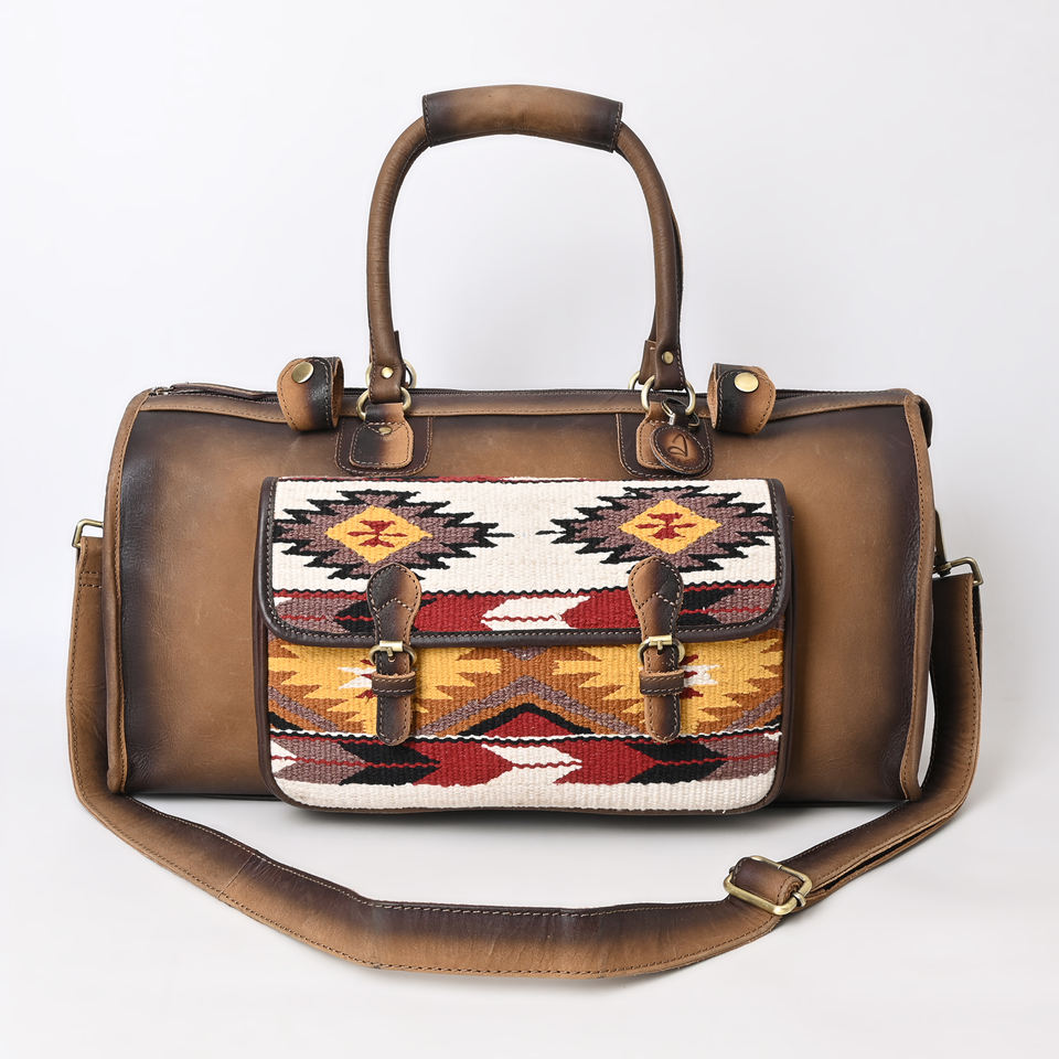 The Heritage Traveler Luxury Durable Full Grain Leather Duffel with Saddle Blanket Inlay for Weekend & Overnight Trips