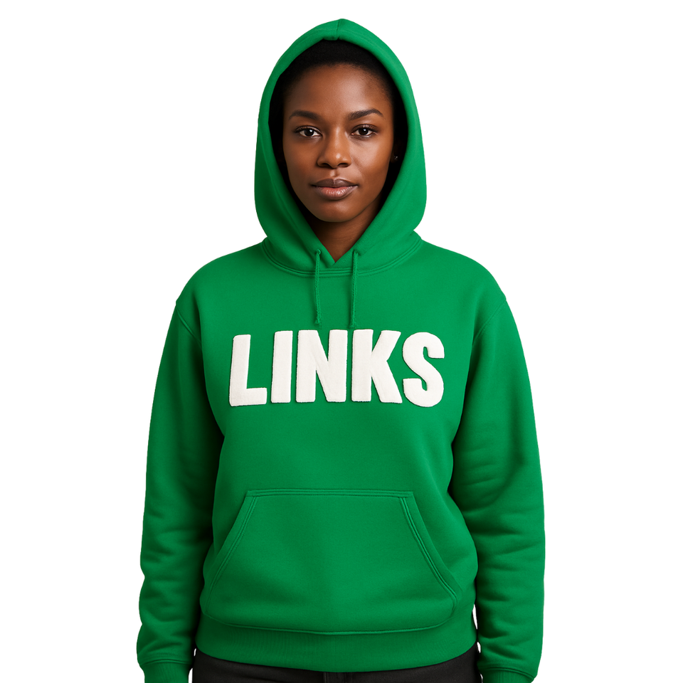 The Links Incorporated Green Pullover Hoodie with White Chenille Embroidery Black Civic and Professional Organization Apparel