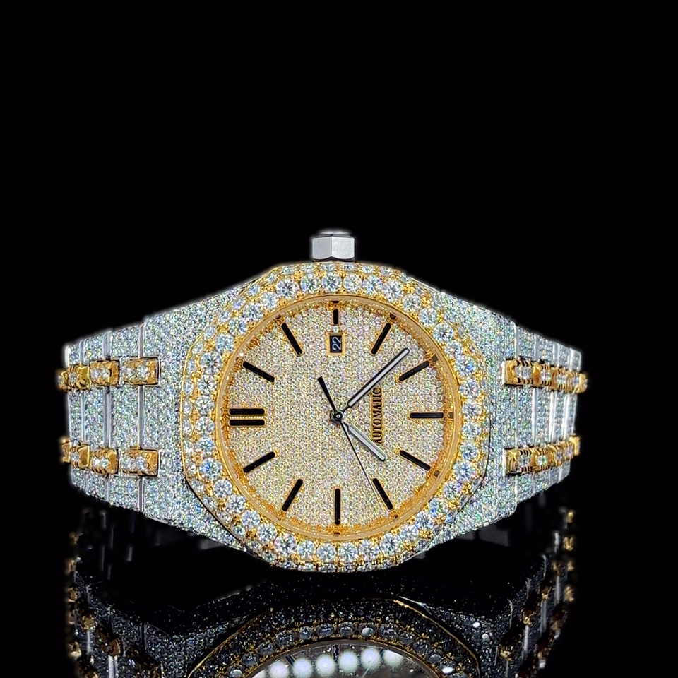 The Moissanite Diamond Quartz Watch Beautifully Crafted Stainless Steel Custom Watch for Men Enhanced VVS Clarity Auto Date 41MM