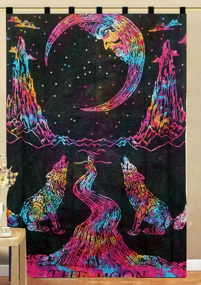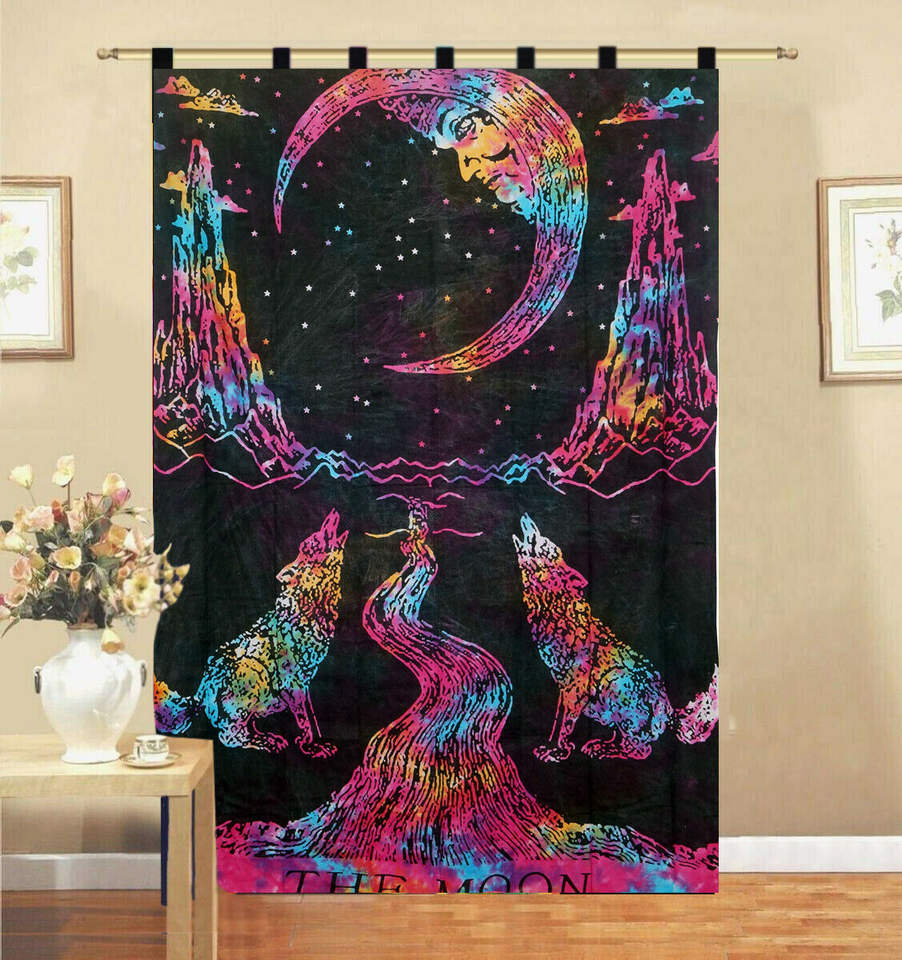 The Moon Wolf Small Bohemian Floral Door Window Drape Valance Curtain Handmade Cotton Tapestry Multi Color By Indian Consigners