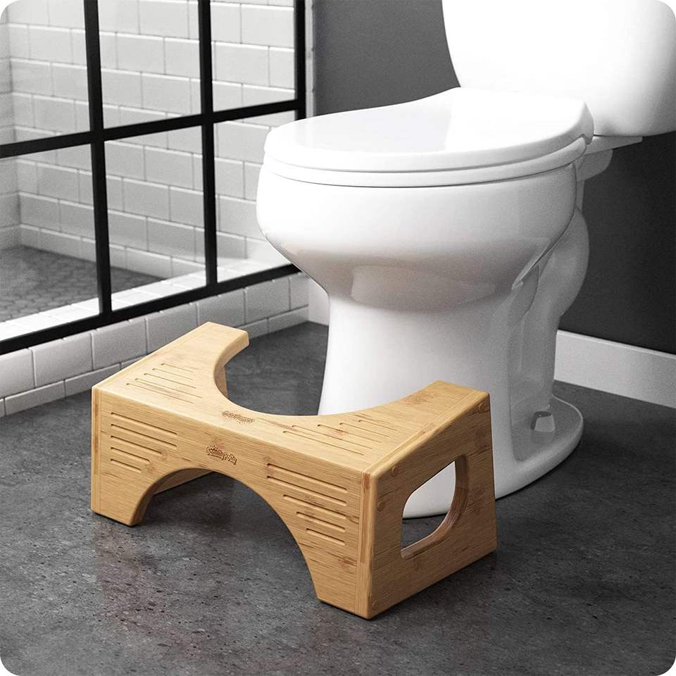 Original Bamboo 7\" 9\" Flip Toilet Stool Brown-Enhanced Wooden Bathroom Comfort Furniture Adjustable Heights for Home Office