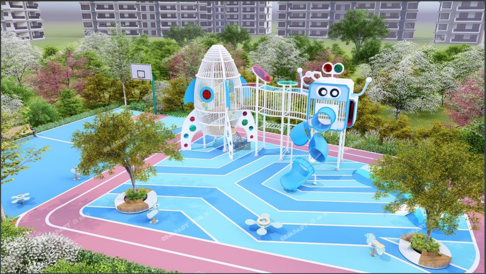 The Outdoor Playground of the Kindergarten Can Be Customized with Large Combination Wooden Slides and Iron Slides