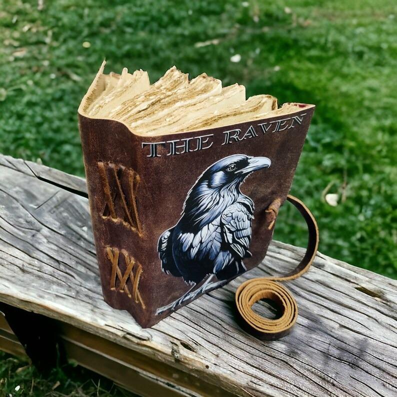 The Raven Vintage leather Journal Blank Spell Book of Shadows
