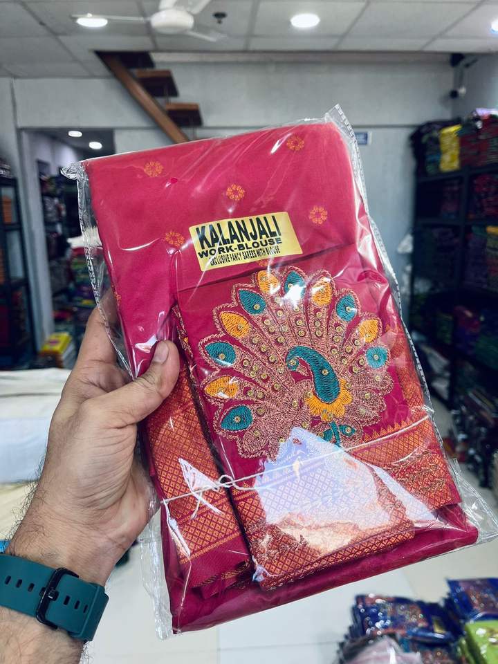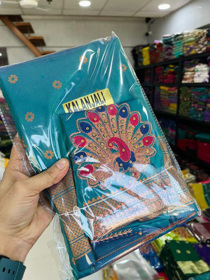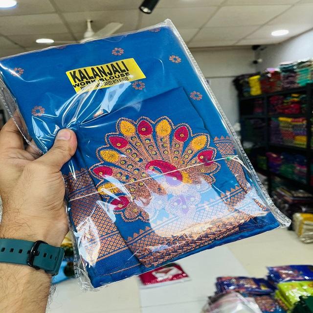 Women's Saree with Peacock Pallu and Paithani Hand Aari Work All Over Full Designer Blouse Made in India