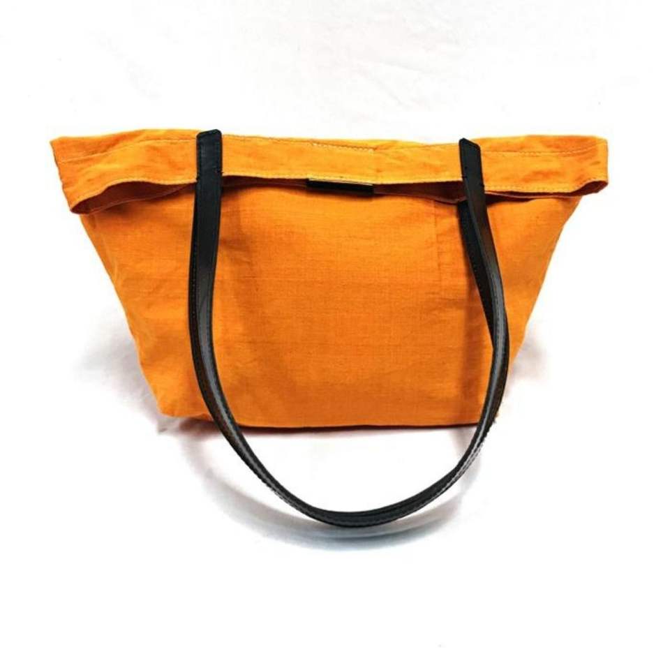 The Sunny Lightweight Orange Nylon Tote Bag with Black Leather Handles Casual Everyday Shoulder Bag Handmade From Indonesia