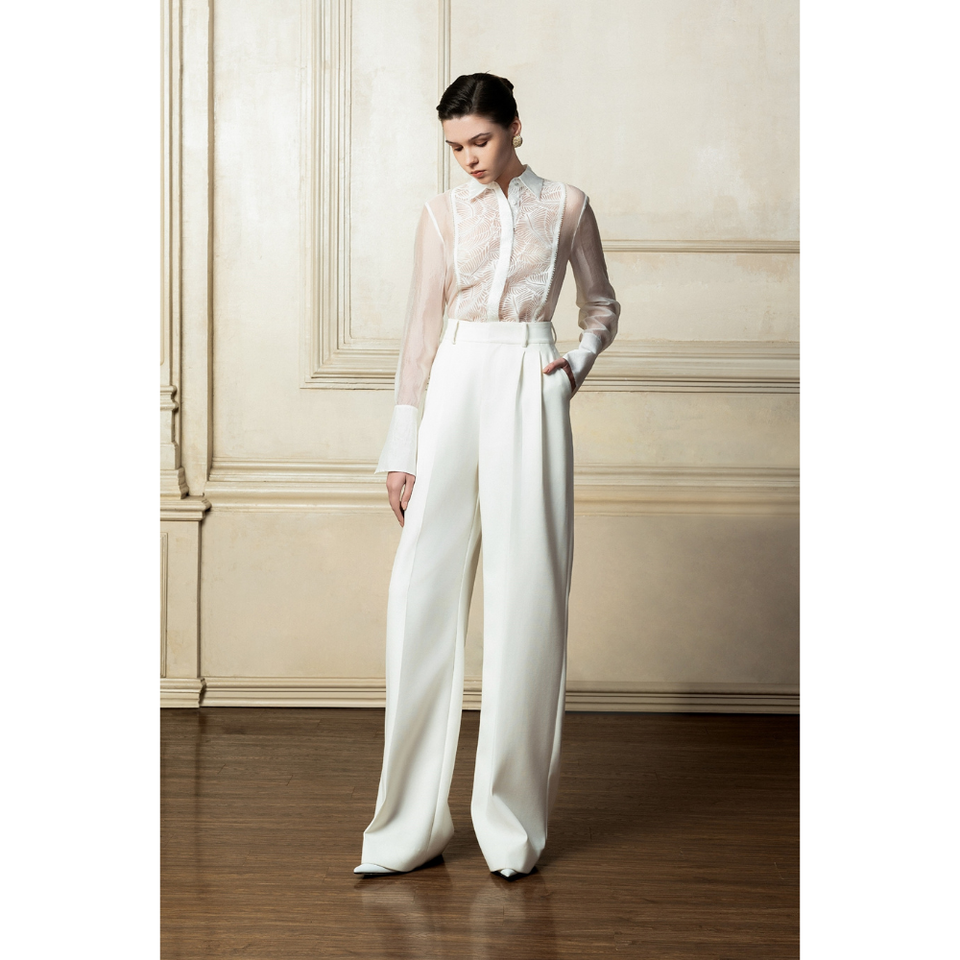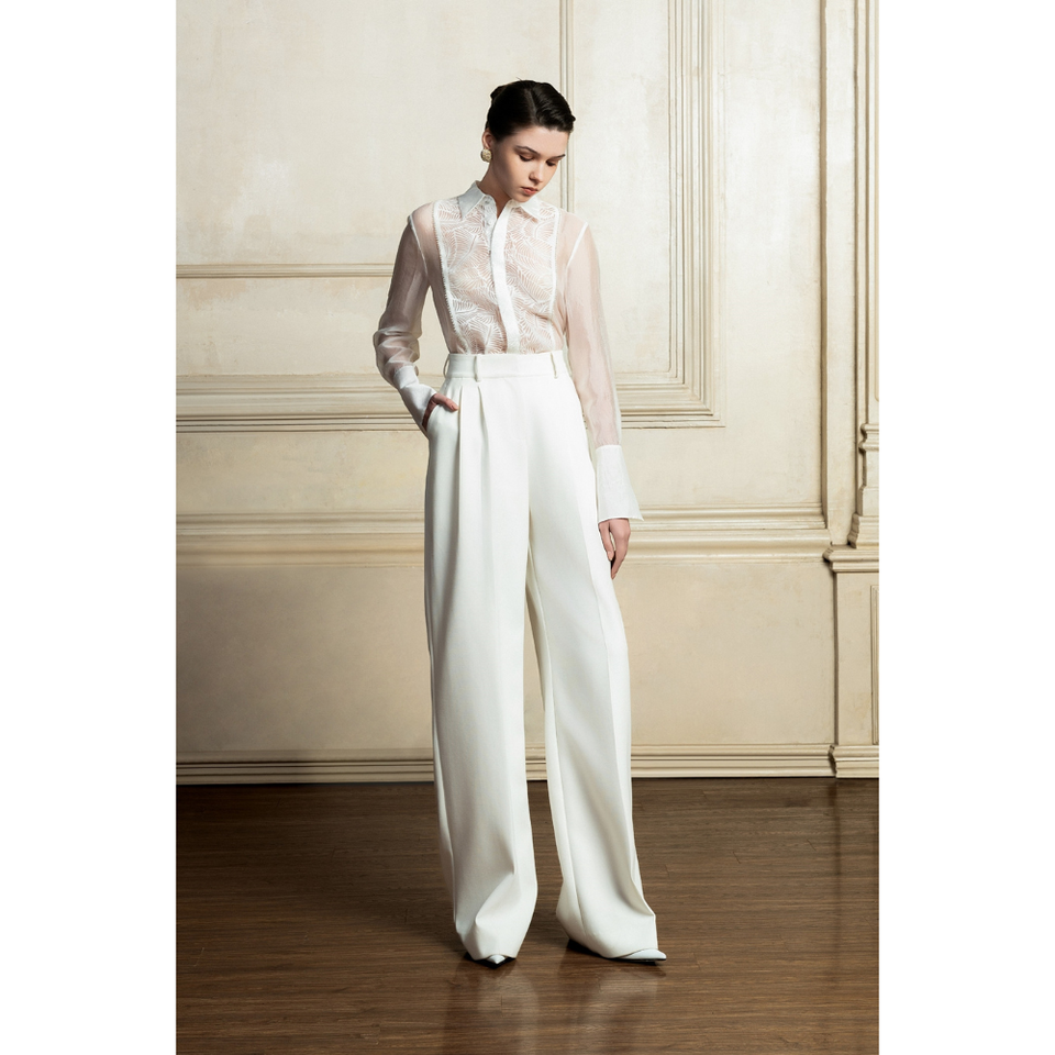 The Wide Leg Pants Feature A Sleek Pleated Design And Woven Rayon Spandex Fabric That Provides A Fluid And Elegant Fit