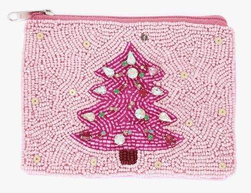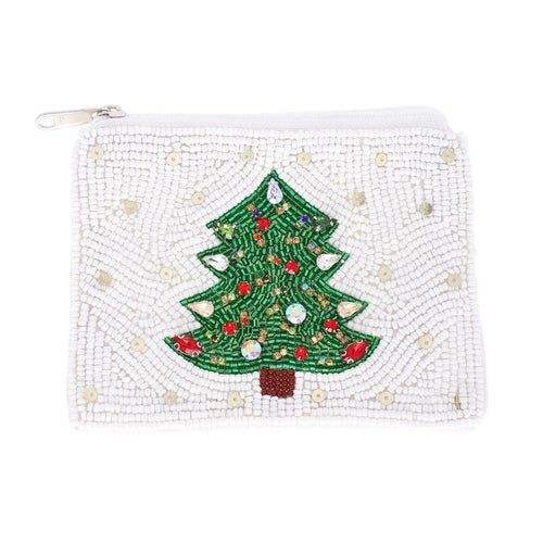 The beautiful Christmas tree seed beaded hand embroidery beaded coin pouch small wallet coin bag with mini zipper bag