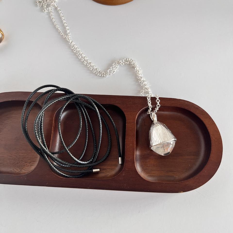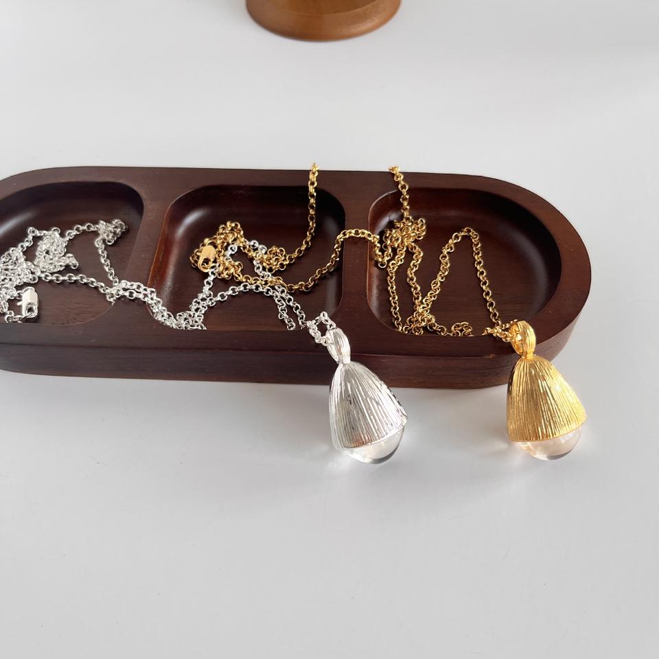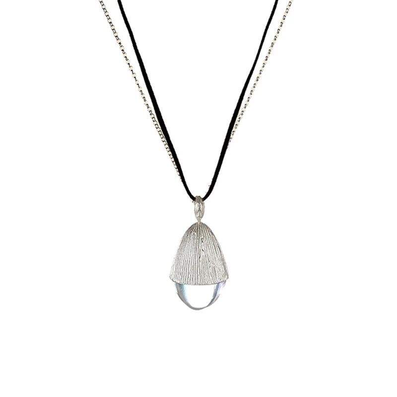 The same style long necklace for women as the blogger's made of white crystal pinecone and suede cord