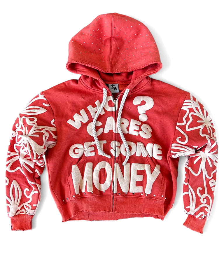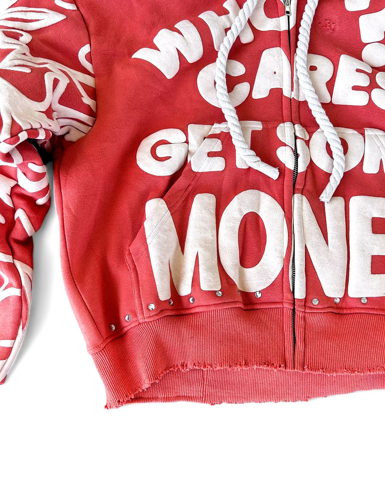 Thermal Custom Distressed Hem Rhinestone Pullover Boxy Cropped Oversized Acid Wash Zip up Puff Print Hoodies Men