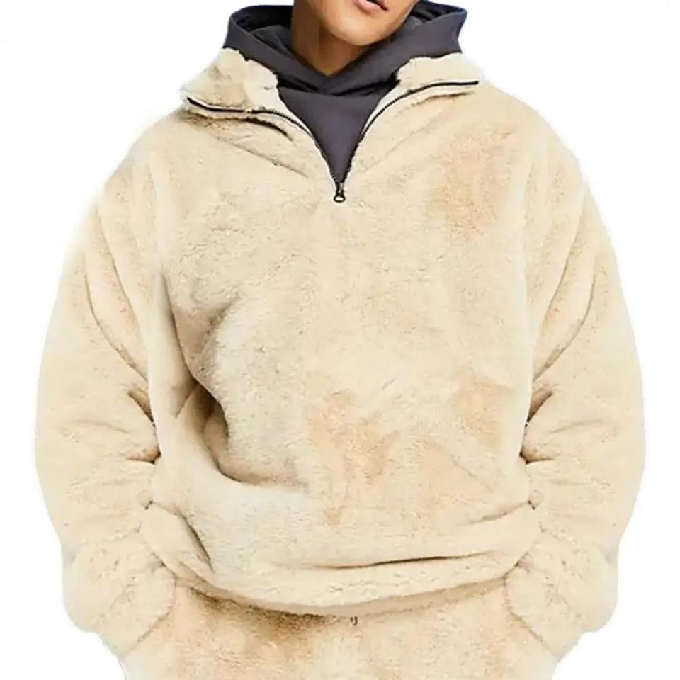 Thermal Men Jackets Winter Sweatshirt Half Zipper High Collar Plush Keep Warm Jacket Men Winter Hoodies Loose Pullover