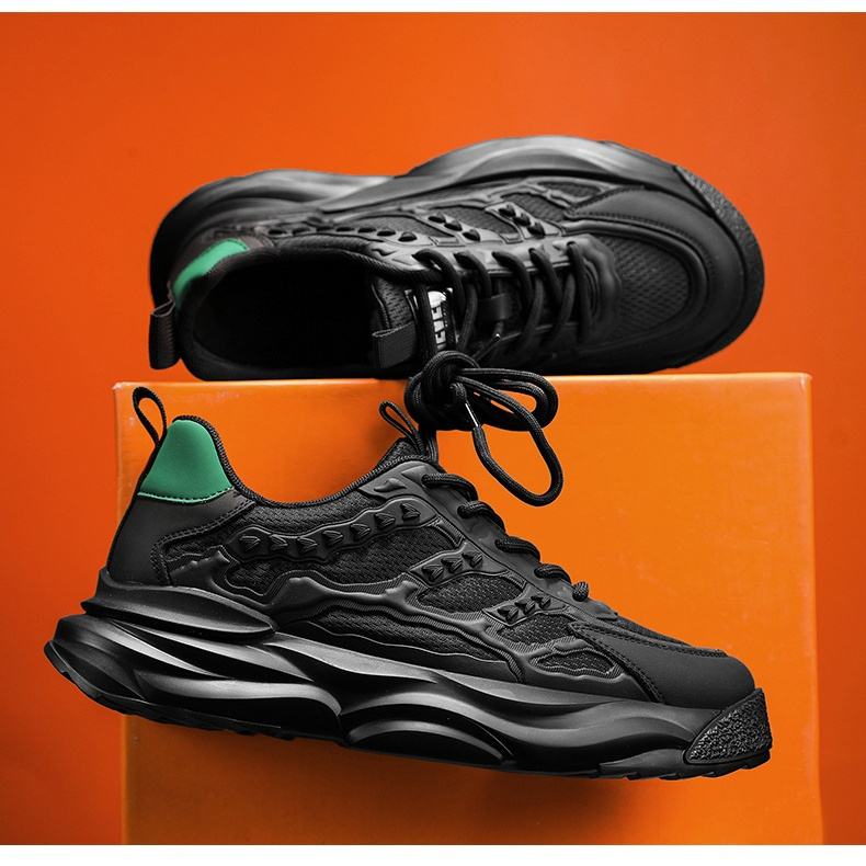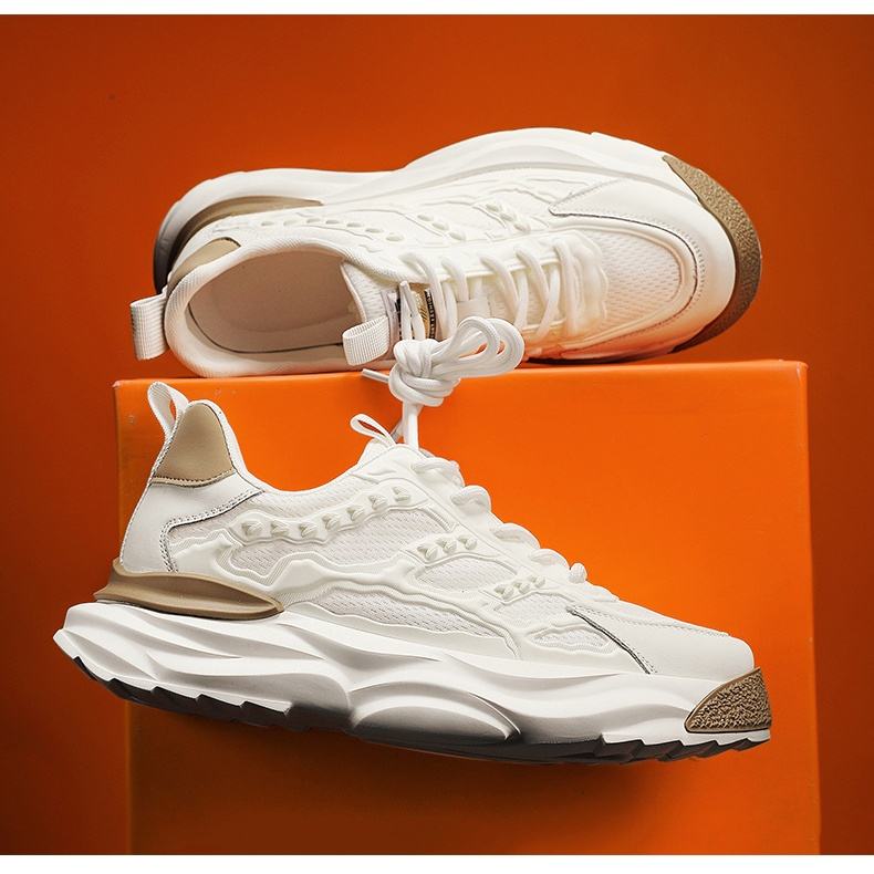 Trendy Lightweight Breathable Genuine Leather & Mesh Upper Spring Season Men's Fashionable Casual Sports Running Shoes