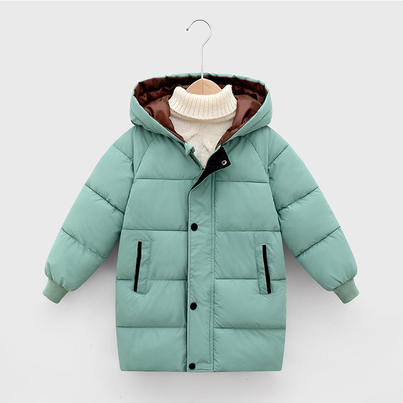 Thick Down Cotton Jacket Big Boys and Girls Hooded Cotton Coat Autumn and Winter New Children's Mid-length