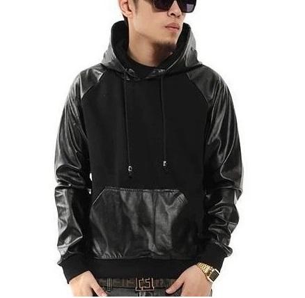 Men Leather Sleeves Hoodies