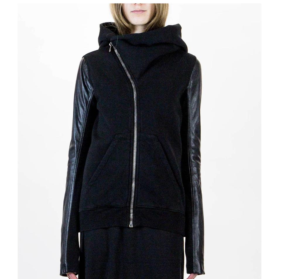 Thick Fashion Black Sweatshirts Wholesale Leather Sleeve Hoodie Jacket Hot Selling Breathable Thick Winter Sportswear Hooded