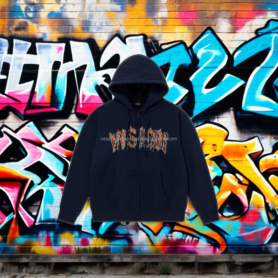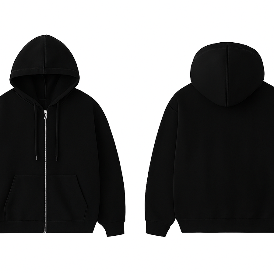 Thick Fleece Zipper Hoodie 500GSM Retro Y2K Streetwear 3D Embroidery Front Acid Wash Finish and Drop Shoulder Fit