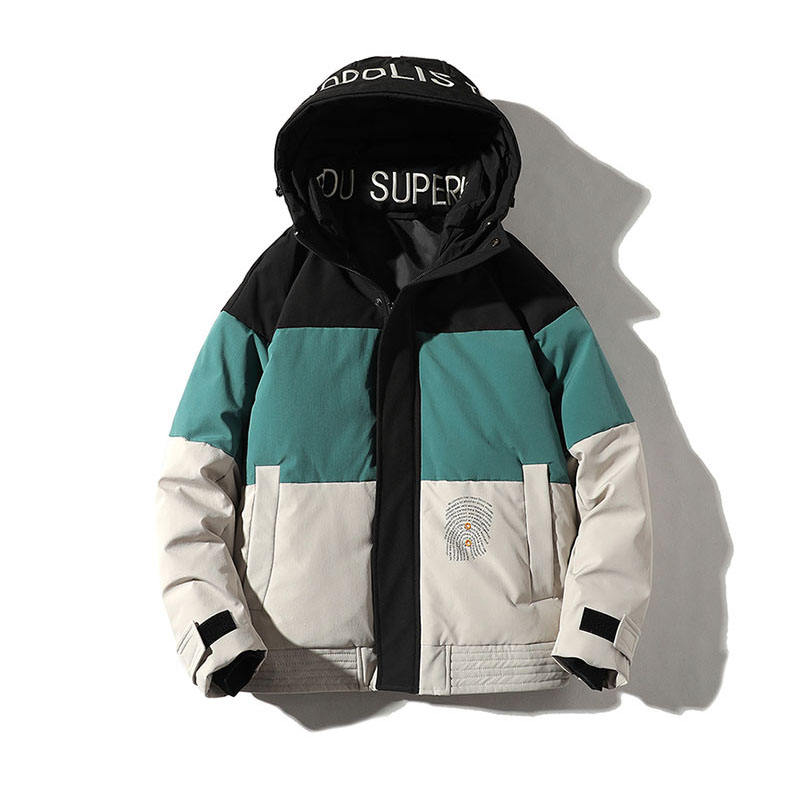 Thick Patchwork Hooded Men's Winter Down Jacket Regular 90% White Duck Down Casual Down Coat Warm Puffer Jacket
