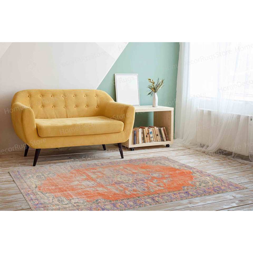 Thick Printed Rug, Orange Runner Rug, Bohemian Turkish Design,Nonwoven Thin Rug