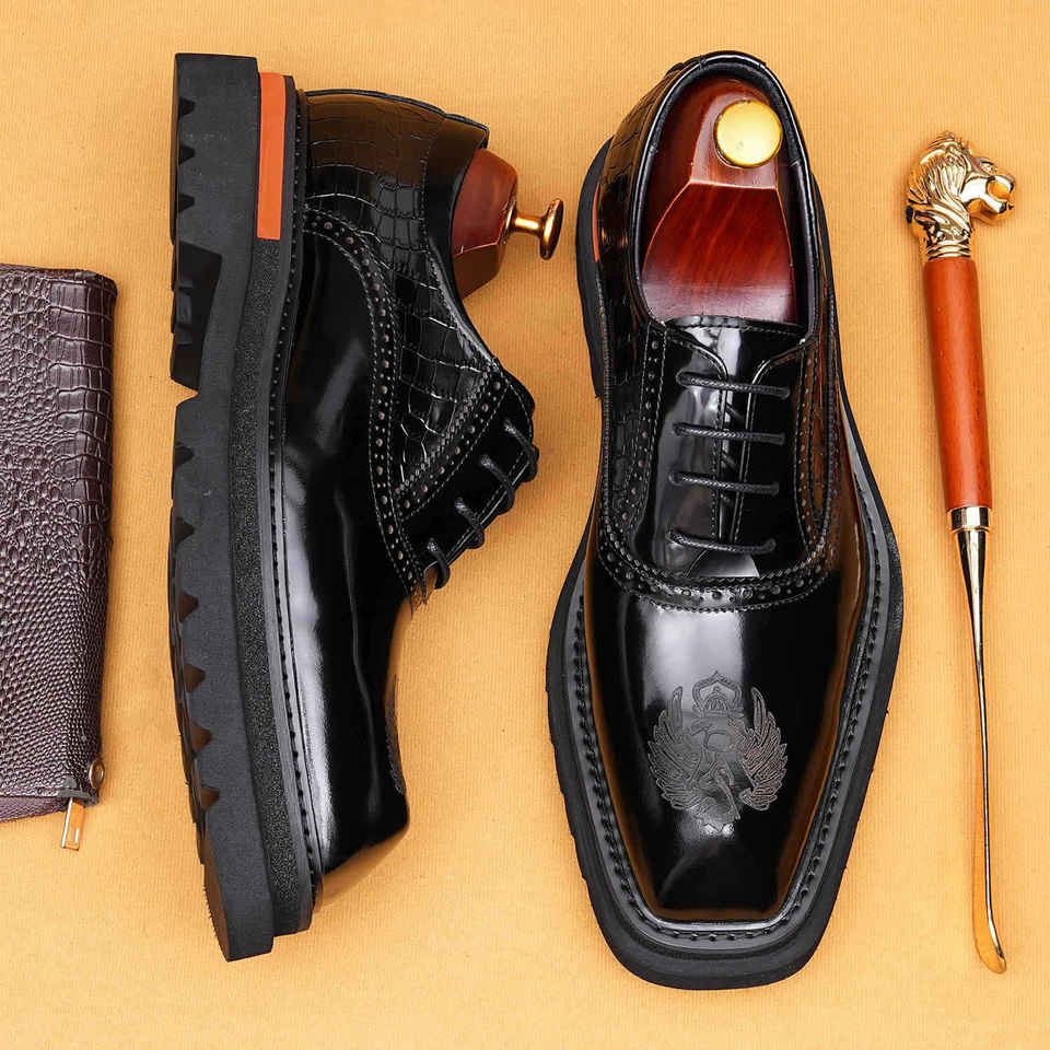Thick Soled Cowhide Oxford Shoes Closed Toe Waterproof Smooth Finish Casual Formal New High Quality Genuine Leather Men's Shoes