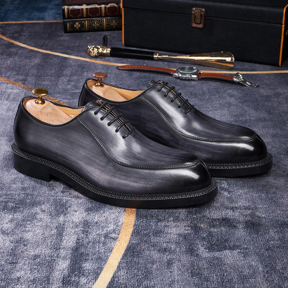Thick-Soled Men's Genuine Leather Loafers Metallic Shiny Lace-Up Waterproof for Business Casual Autumn with Height