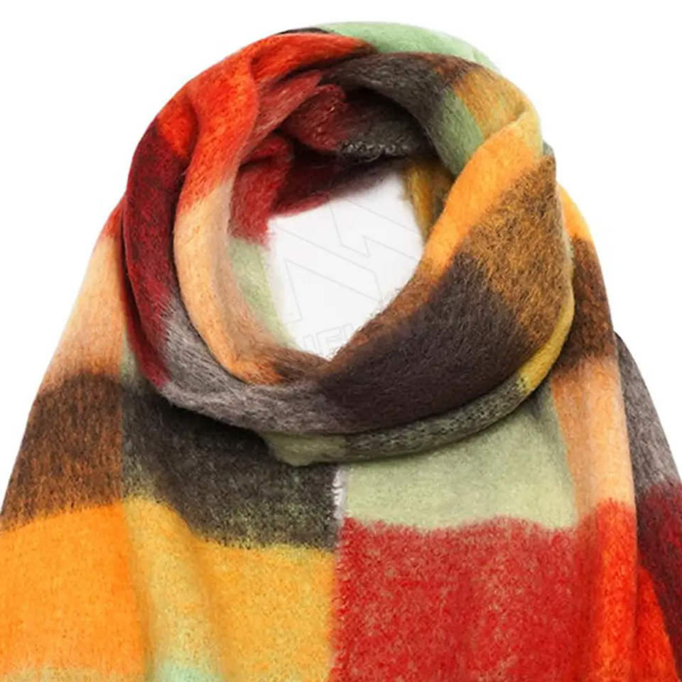 Thick Stock Long Large Cape Tassel Acrylic Chunky Fringe Winter& Oversized Plaid Scarf for women