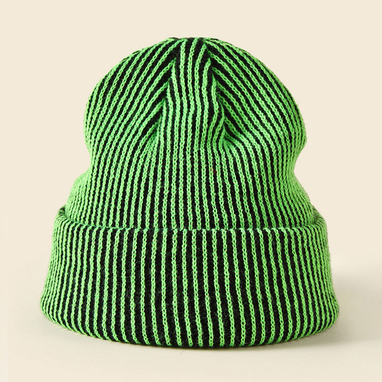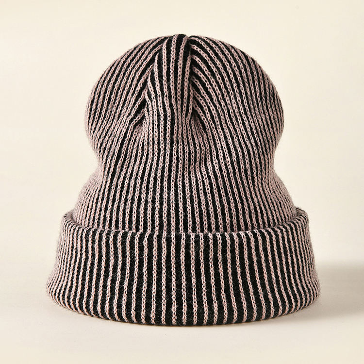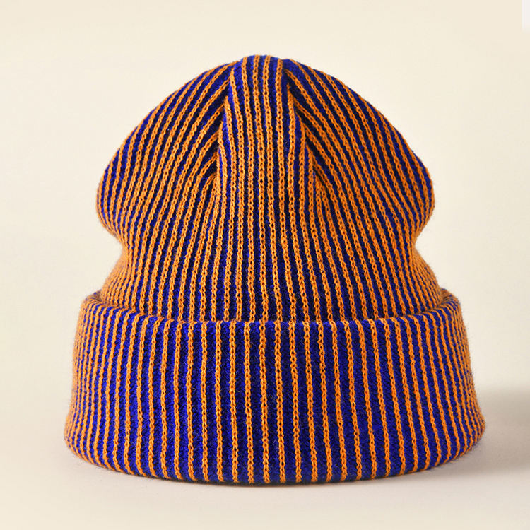 Thick Strip Winter Knitted Caps Custom Beanie jacquard Knit Hats Winter Acrylic Hat Warm Curly Hat Two Toned Striped Beanies