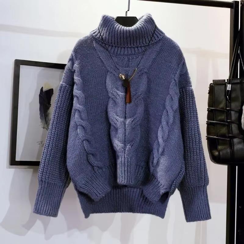 Thick Turtleneck Sweater Women's 2025 New Winter Korean Loose Pullover Knitted Front Logo Anti-Pilling Casual Tops