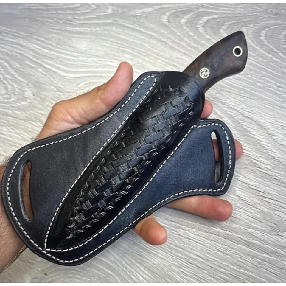 Thick leather knife sheath with a heavy duty button for a unique artistic look Adjustable leather knife cover