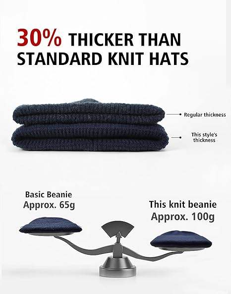 Thick rib knit beanie hat premium soft wool fabric warm fit for men and women daily casual fashion