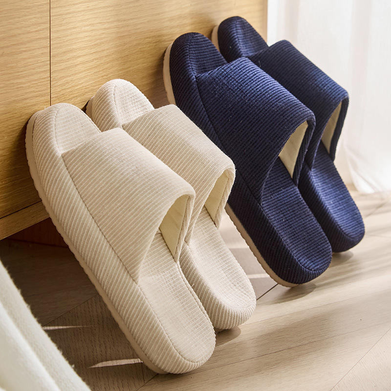 Thick-soled household cotton slippers for women indoor use suitable for all seasons anti-slip office open toe slippers for men