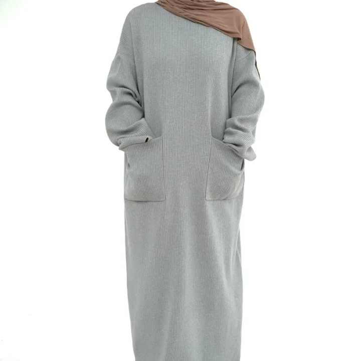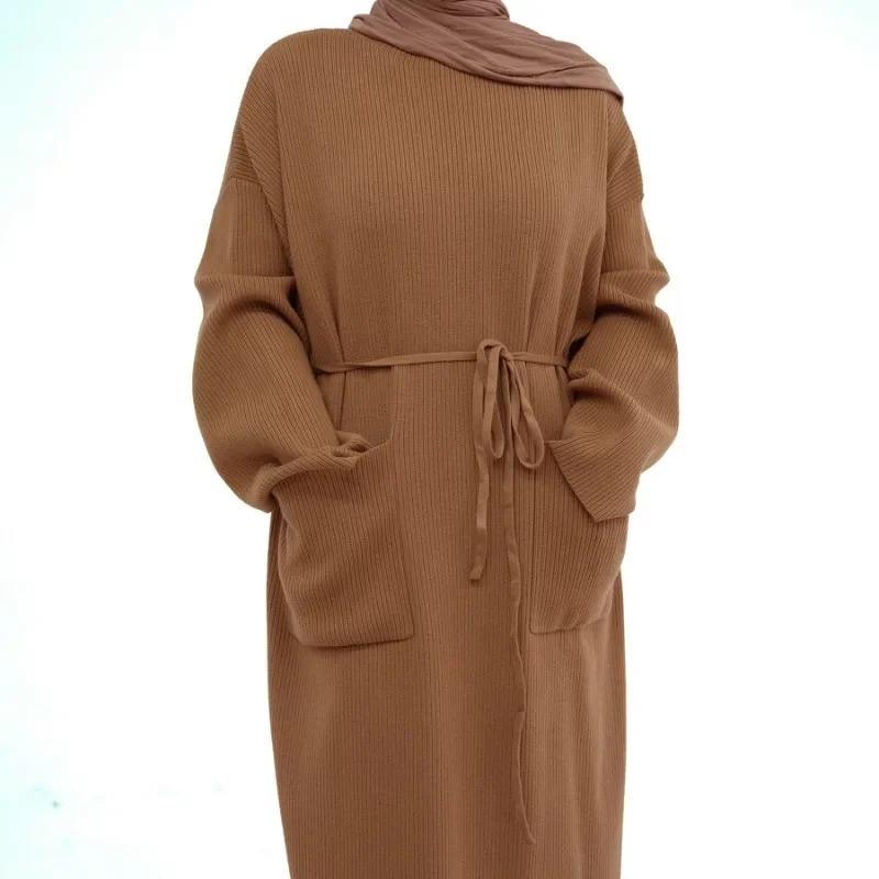 Modest Satin Knitted Loose Abaya with Natural Waistline Thickened Satin Fabric
