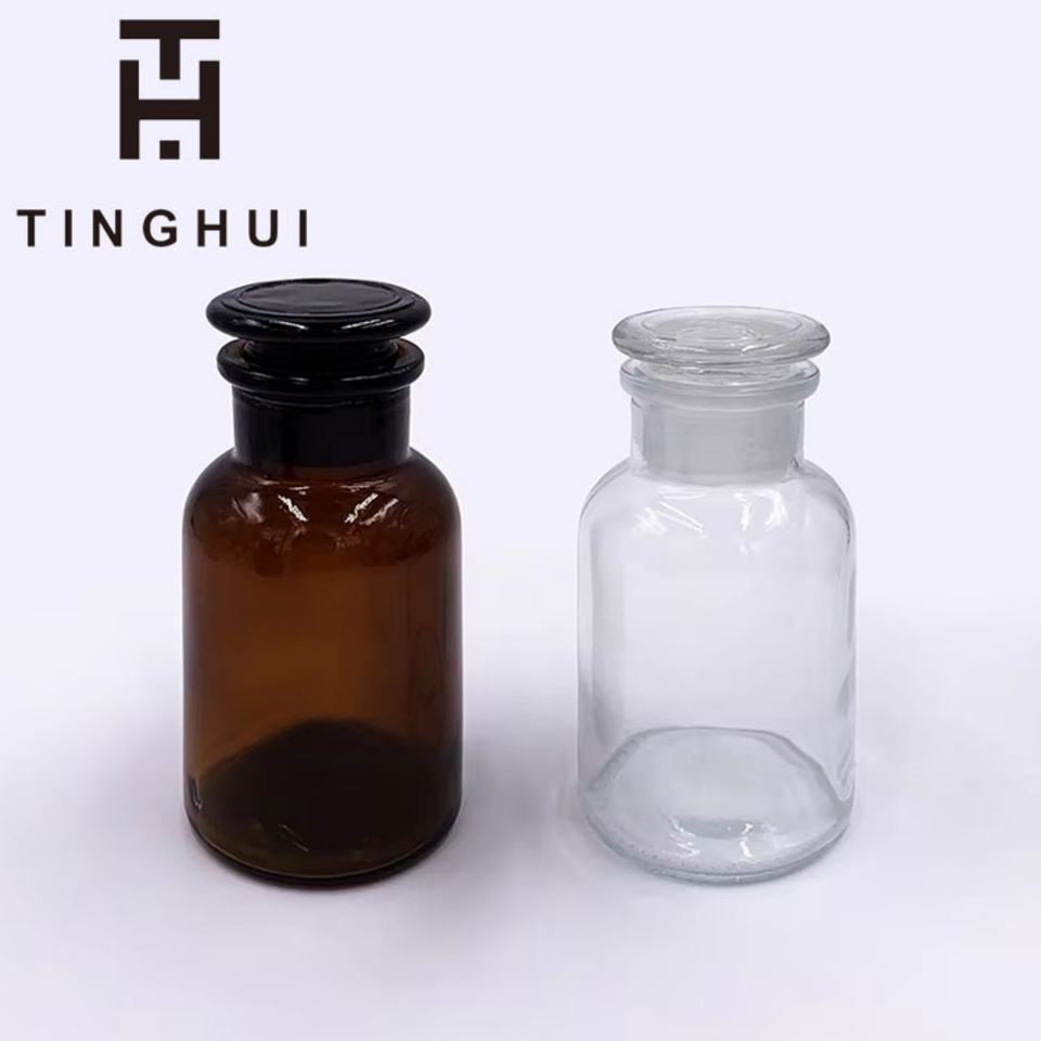 Thickened Packaging Clear Amber Wide Mouth Glass 30ml-1000ml Reagent Bottle With Glass Stopper for Packaging