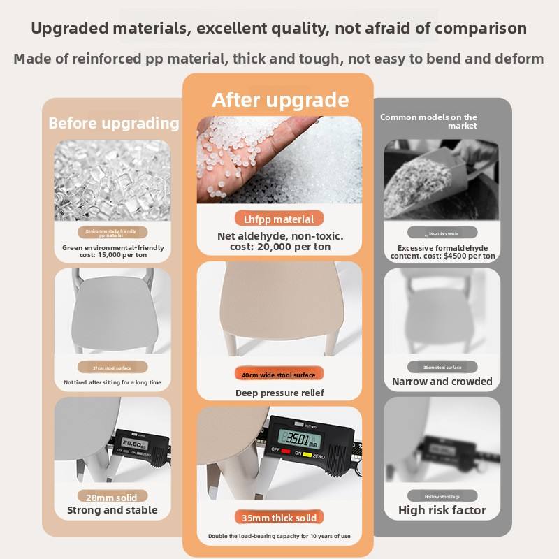 Thickened Plastic Chair for Home Use, Leisure Dining Table Chair, Simple Stackable Commercial Stool with Backrest, Nordic Style