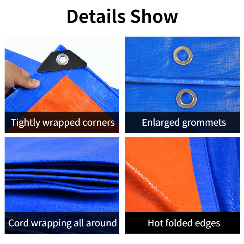 Thickened Wear-resistant Sunshade Tarpaulin Outdoor Blue Orange Plastic PE Shade Sails Suitable for Picnic, Cushion, Rest