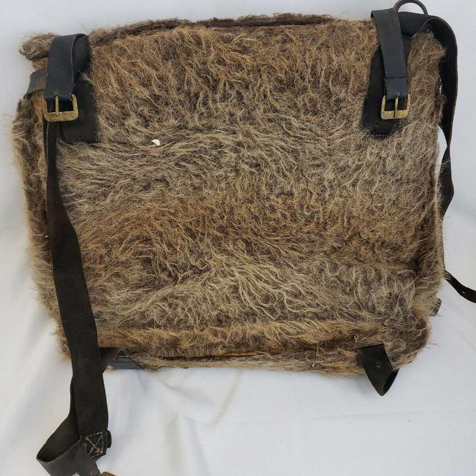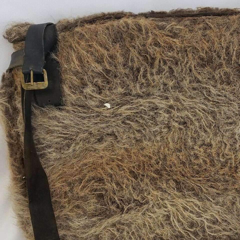 This appears to be a vintage or handmade knife with an accompanying raw leather sheath and carrying pouch