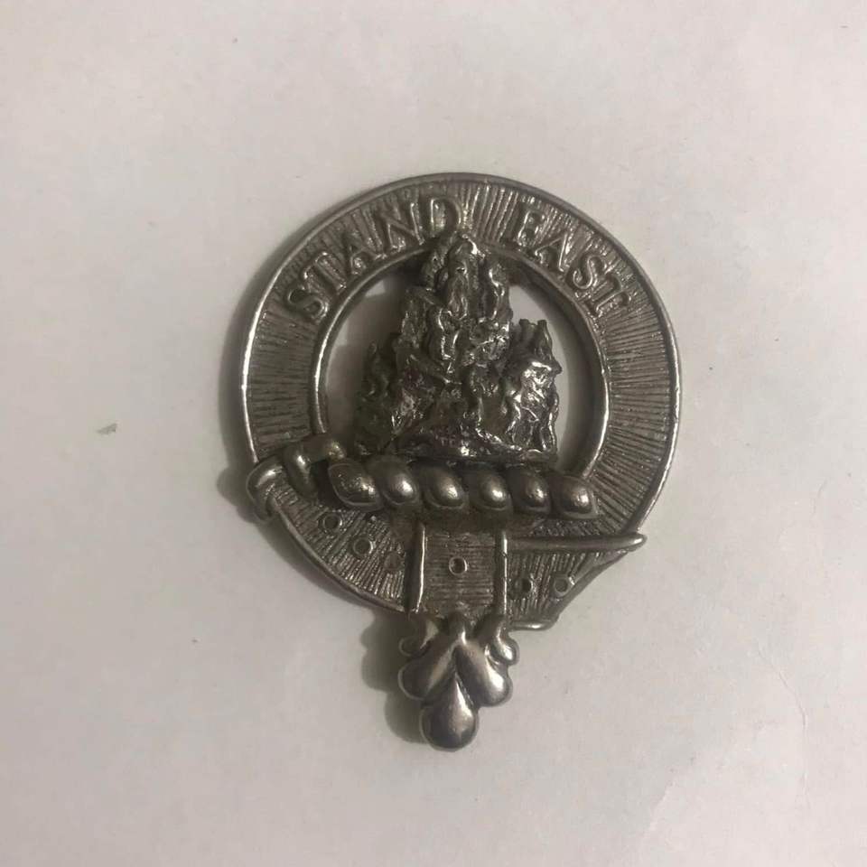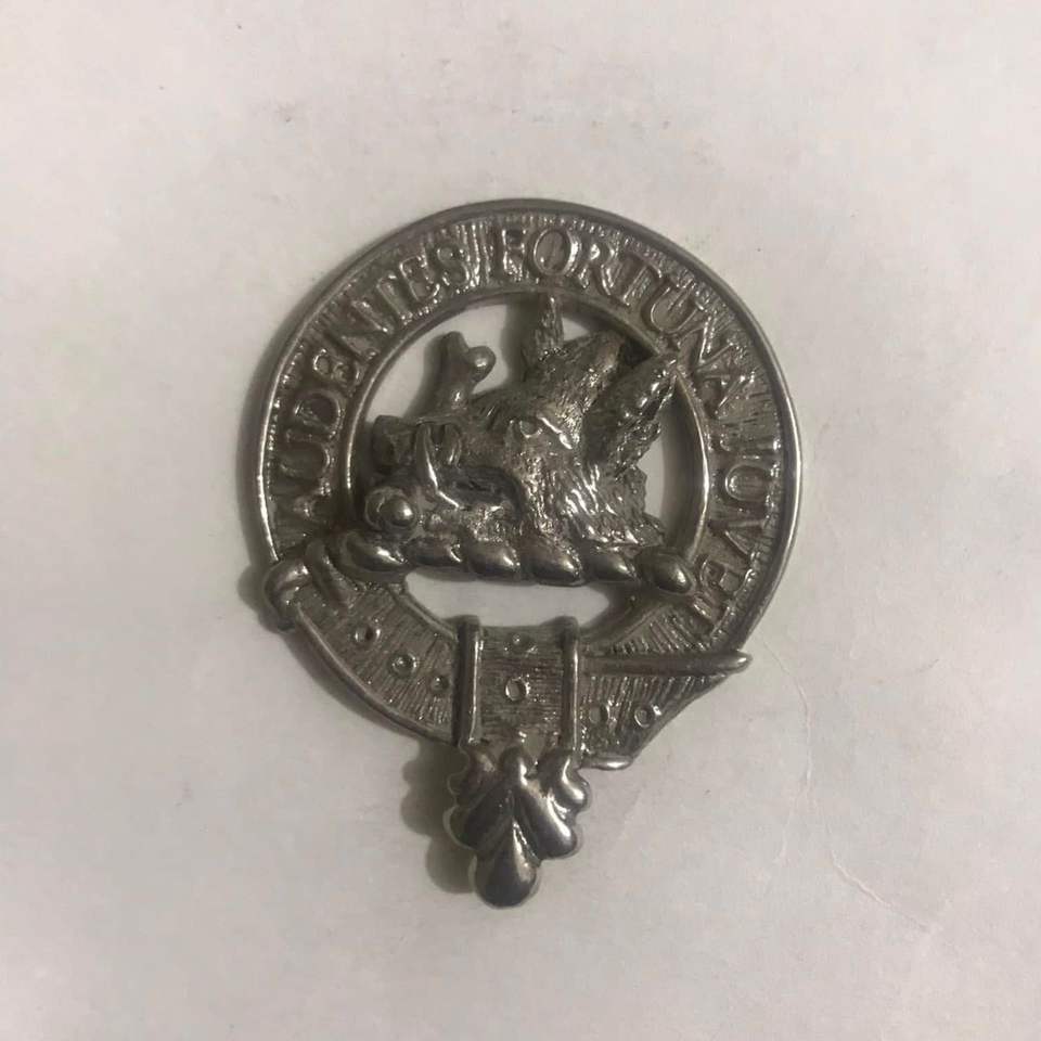 This is a Clan Kennedy cap badge or brooch, featuring the clan crest and motto.