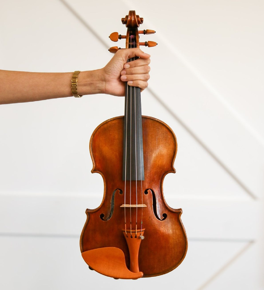 This professional-grade violin is a classic string instrument with a rich brown finish. It is available at wholesale prices.