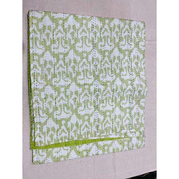Thoughtful Cotton Kantha Bed Cover Highlighting Traditional Print Art And Soft Quilted Texture Enhancing Bedroom Atmosphere