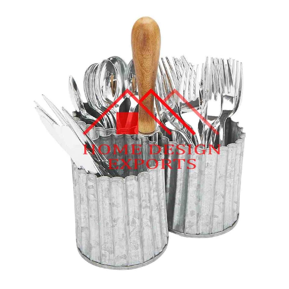 Three Compartment Galvanized Flatware Cutlery Caddy Counter top Holder for Spoons Knives Forks and Knifes Holder