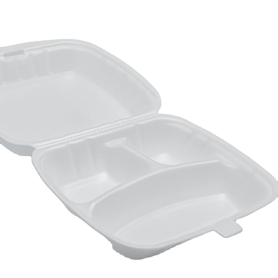 Three-Compartment PS Foam Trays with Hinged Lid Disposable Take Away Lunch Box Fast Food Hamburgers Factory From Vietnam
