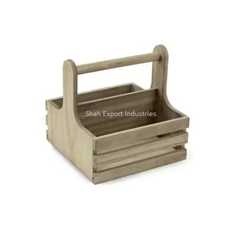 Three Compartments With Metal Black Handles Engraving Wooden Cutlery Holder for Hotel Home Tabletop Storage Organizer