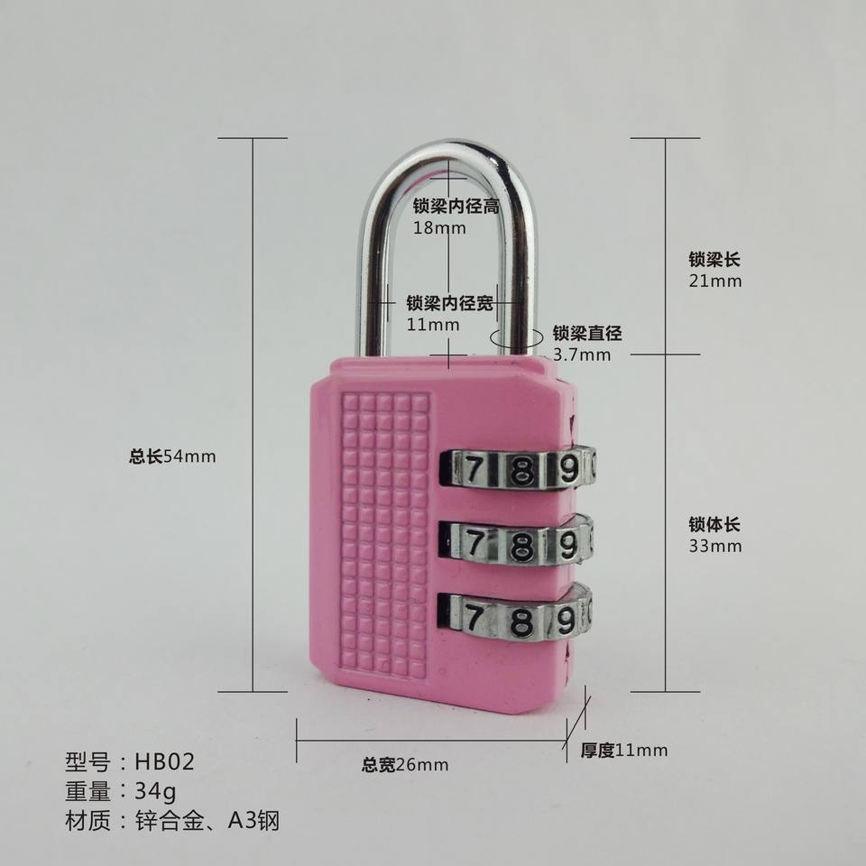 Three Digit Combination Padlock Hb02 Zinc Alloy Resettable For Gym Locker Bag Cabinet Backpack Travel Lock