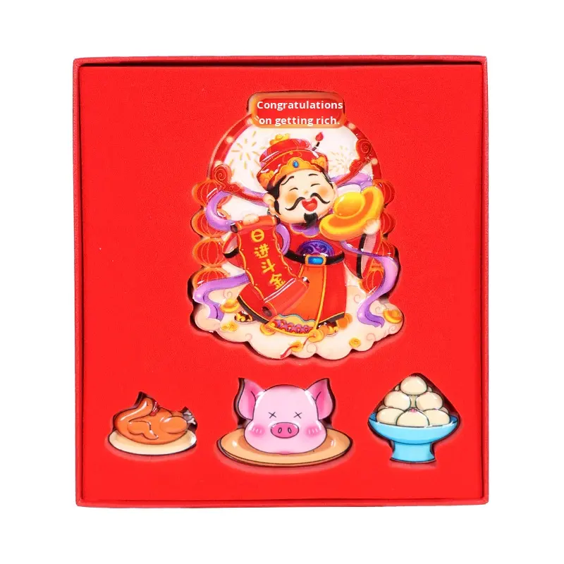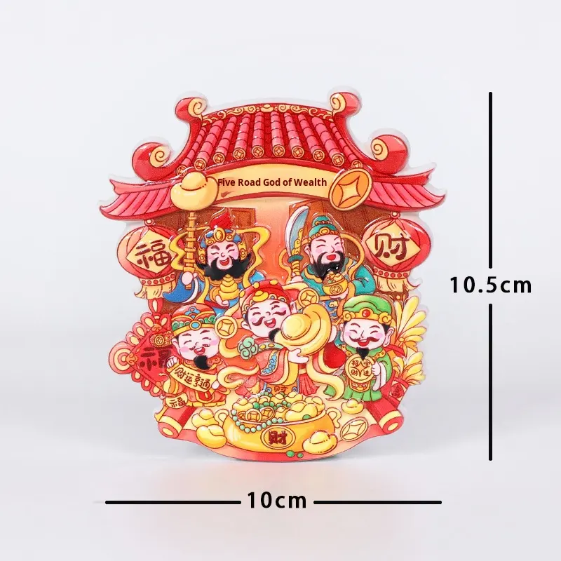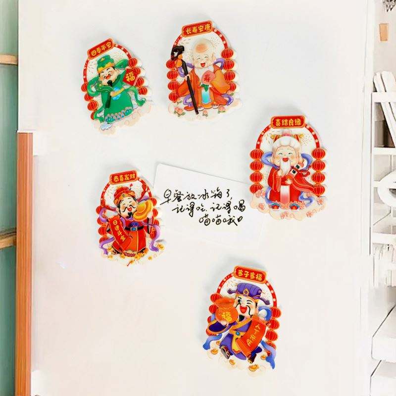 Three-Dimensional Chinese Style Cartoon Five Blessings God Wealth Relief Fridge Magnet National Trend Made Resin Magnetic