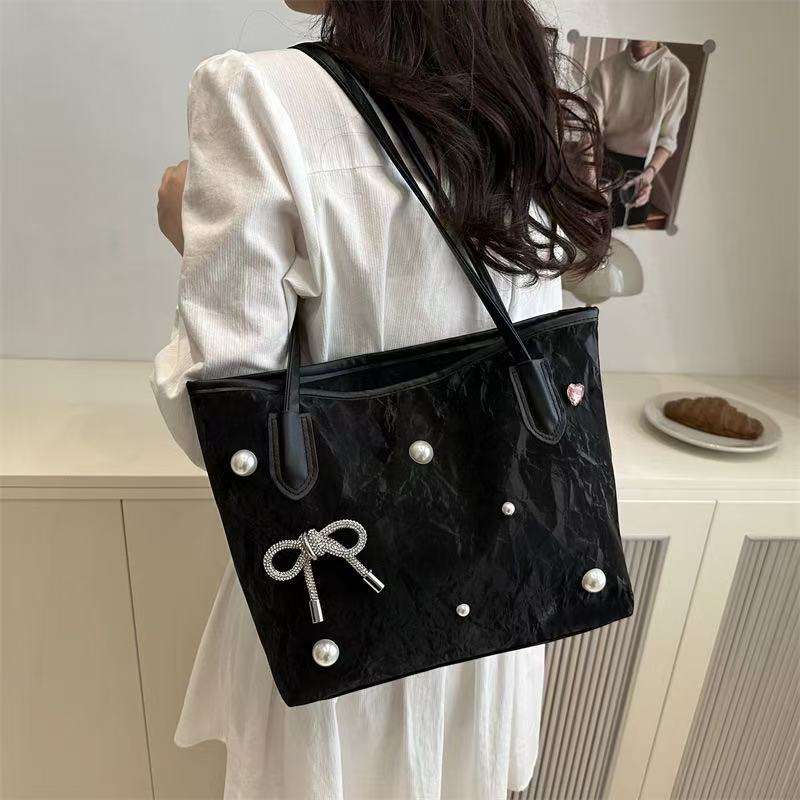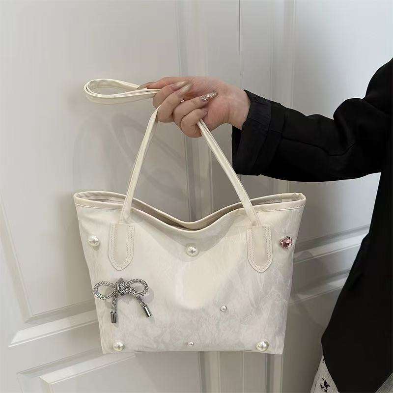 Three Dimensional Large Capacity Bag with Pearl Bow Decoration for Women