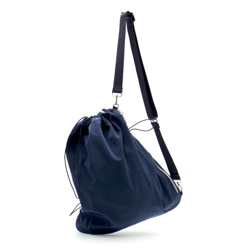 Three Dimensional String Eden Bag Made Of Contaminated Nylon Fabric In Misty Navy With Light Weight Design