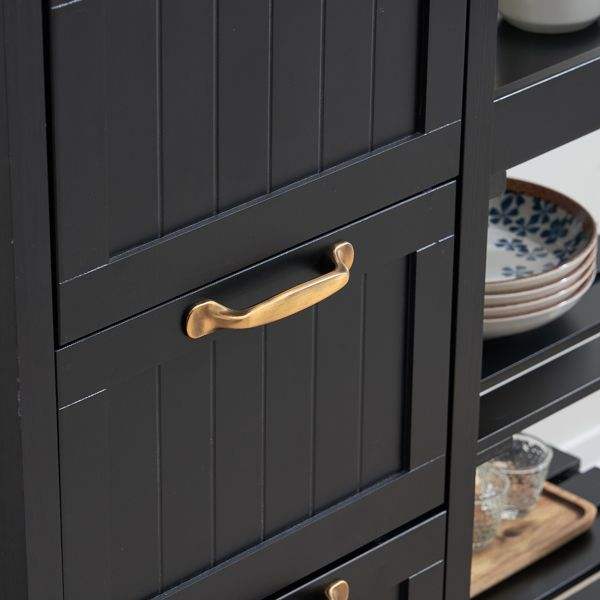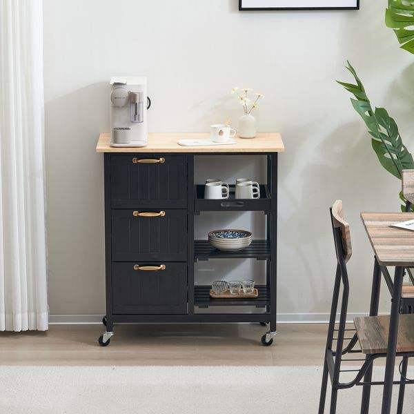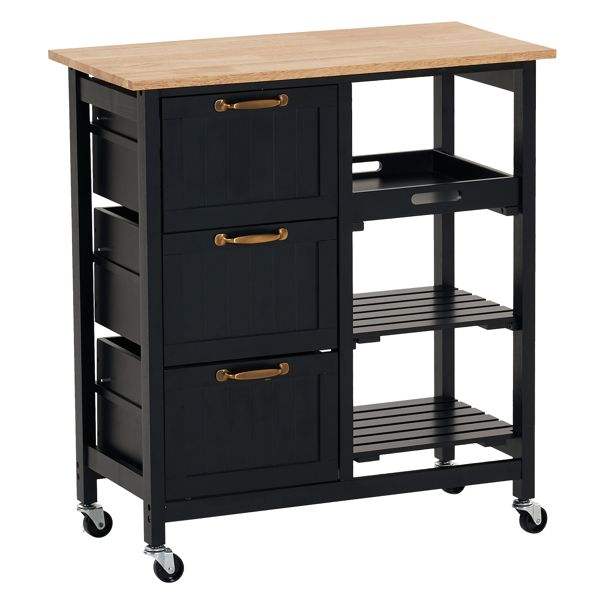 Three Drawers Three Layers Bronze Color Handle Rubber Wood Log Color Table Top Black Spray Paint Dining Car