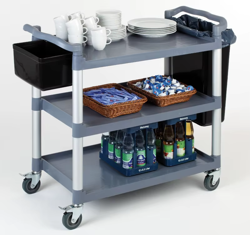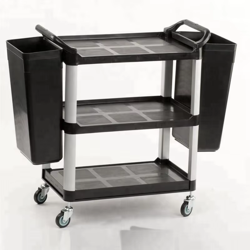 Three-Layer Plastic Food Service Trolley with Wheels for Restaurant & Hotel Use